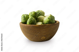Brussels sprouts cabbage in wooden bowl. Brussels sprouts cabbage isolated on a white background. Cabbage with copy space for text.