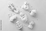 Bright pastel pink Christmas ornaments flat lay, full of festive toys.