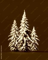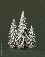 Pine trees with snow on green background. Winter pine trees. 3D Rendering, 3D Illustration