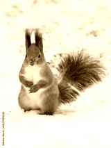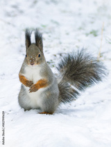 Squirrel looking at the camera in a winter forest