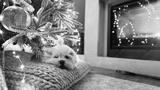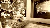 Resting Dog Next to Fireplace and Christmas Tree – Warm Holiday Interior Video