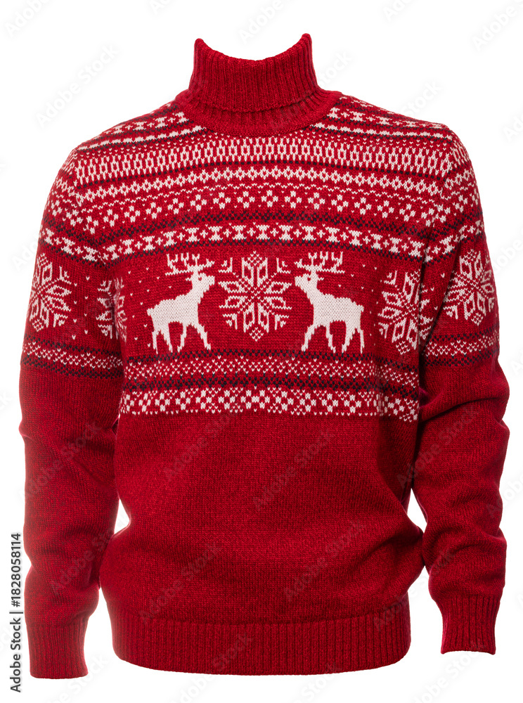 Red Christmas sweater template isolated on white