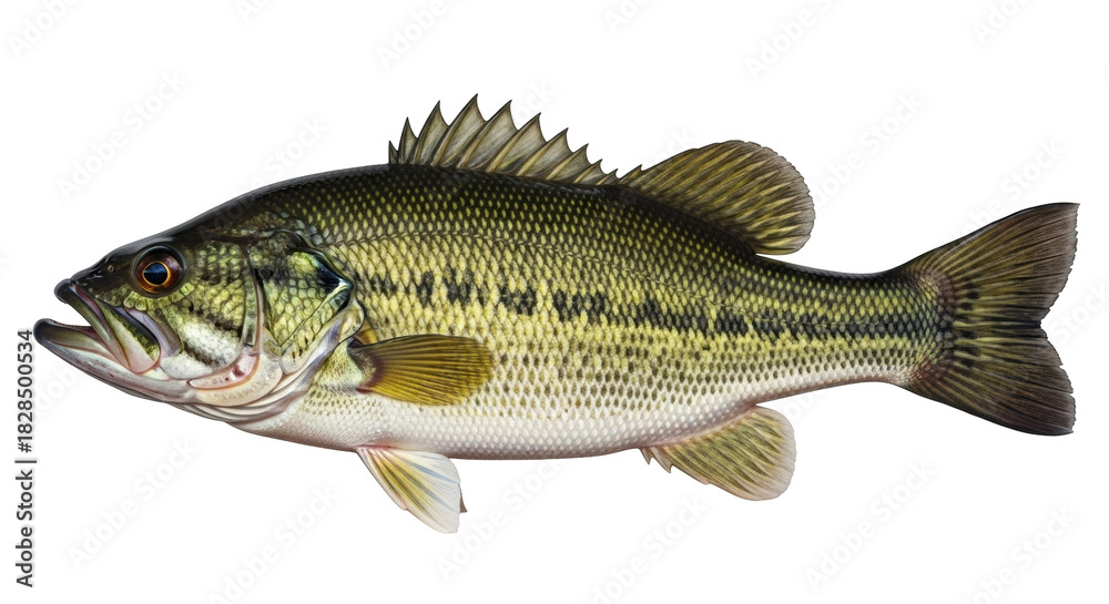 Isolated Largemouth Bass, Micropterus salmoides, North American freshwater game fish