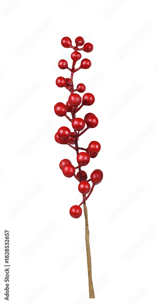 Artificial twig with red berries isolated on white or transparent background