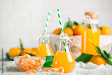 Fresh tangerines and tangerine juice. Healthy food, Selective focus.