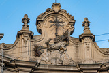 Baroque Bas-Relief of Pope Celestine V (Saint Peter Celestine) Subduing the Dragon of Heresy. Detail on San Pietro Celestino Church in Naples, Italy