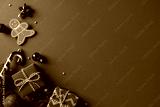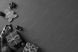 Festive Christmas scene with a gingerbread man, candy cane, and neatly wrapped gifts on a deep green background. Perfect for holiday, celebration, season, greeting, and seasonal gift ideas