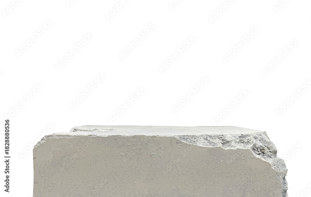 Close Up Rough Concrete Block Podium or Pedestal Isolated on Background with Clipping Path. Stone Cube for Product Display or Urban Design Element. Front View.