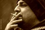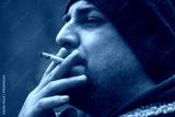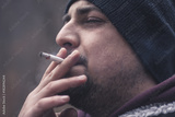 Man with cigarette having a smoke. Enjoying with eyes closed