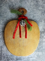 Vintage rustic wooden cutting board, Christmas decorations. Christmas menu background