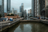 Canary wharf cityscape showing docks, skyscrapers, and urban architecture