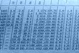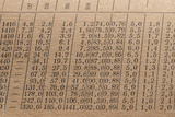 A large fragment of an old paper table with numerical data, illustrated by columns and a series of numbers, used for analysis