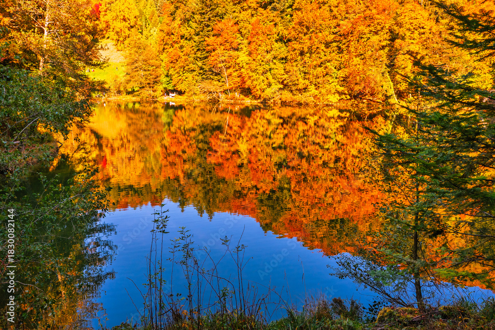 Reflet d’automne vibrant : l’effet miroir des couleurs en mouvement