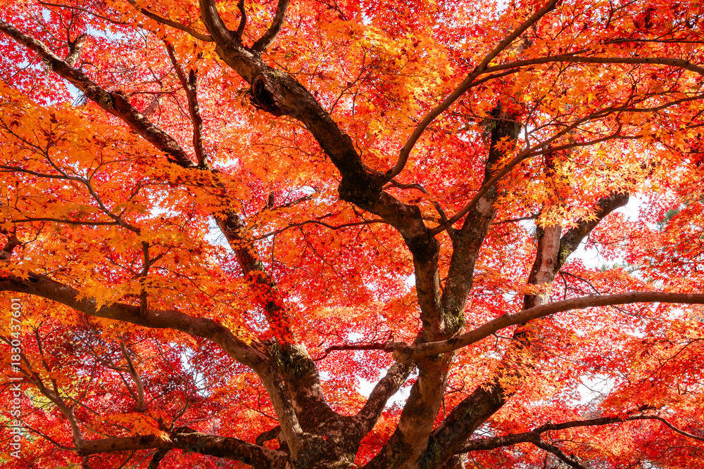 Bright red japanese maple trees in autumn foliage in Japan