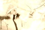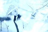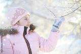 Winter walk on the street on a sunny frosty day. Family with children play snowballs in the park. Winter holidays and family vacation.