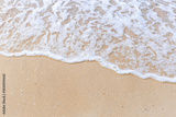 Sand beach with sea waves at coast. Copy space