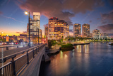 West Palm Beach, Florida, USA. Cityscape image of West Palm Beach, Florida with bridge leading to the downtown and reflection of the city skyline in the water at beautiful sunset.