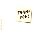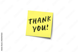 Thank You Handwritten Post-It Note On Yellow Sticky Pad With Gratitude Message