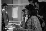 Customer service agent wearing headset working call center in a control room. Telephone support, IT helpdesk staff, teamwork overtime, telemarketing and corporate operations with corporate team