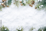 Festive winter setting with foliage, Wintry backdrop featuring conifer branches and shimmering accents