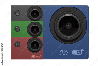 Action camera on a white background.The video camera is compact photo.An action camera on a white background.A video camera for extreme sports.