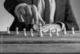 Man wearing suit moving queen piece