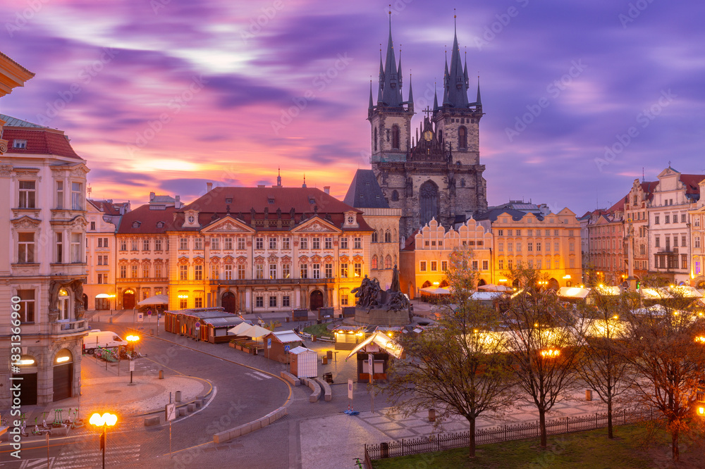 Church of Our Lady before Tyn at dawn in Prague, Czech Republic