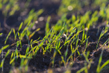 Fresh green grass sprouts beautifully in the warm sunlight, showcasing natures splendor
