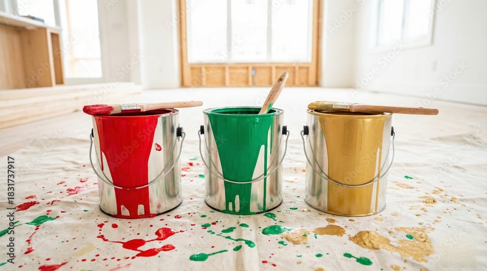 Paint Buckets in Renovation Setting