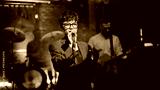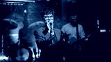 Artistic lady singing microphone at dark modern stage closeup. Beautiful woman