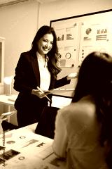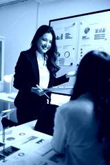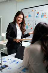 Businesswoman presenting data charts during office meeting