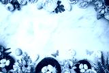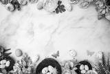 Happy Easter background with easter eggs in nest and spring flowers. Easter background with copy space. Flat lay. High quality photo with marble background
