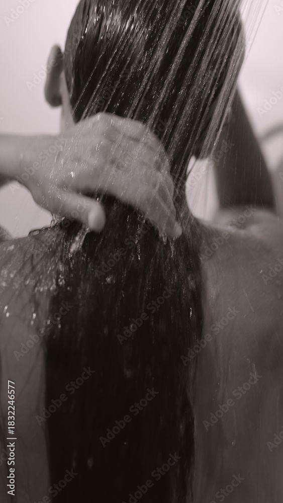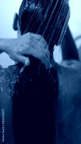 Silhouette of a Woman Appearing in a Shower Surrounded by Flowing Water Gently Falling