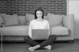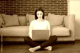 Young woman relaxing at home with a laptop
