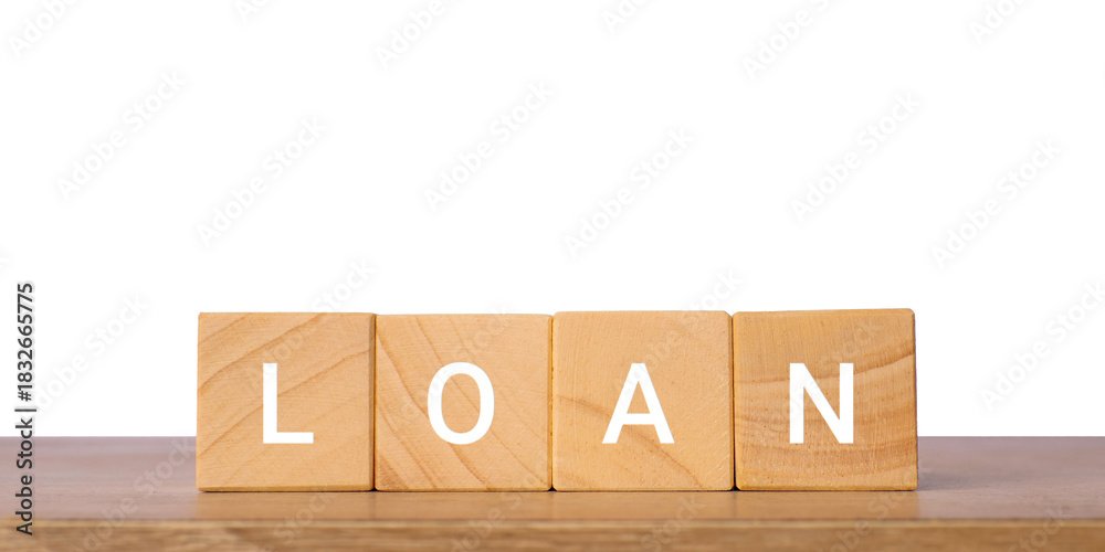 Wooden blocks with word loan for banking and finance, isolated on transparent background