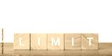 Wooden blocks with word limit for restriction and control concept, isolated on transparent background