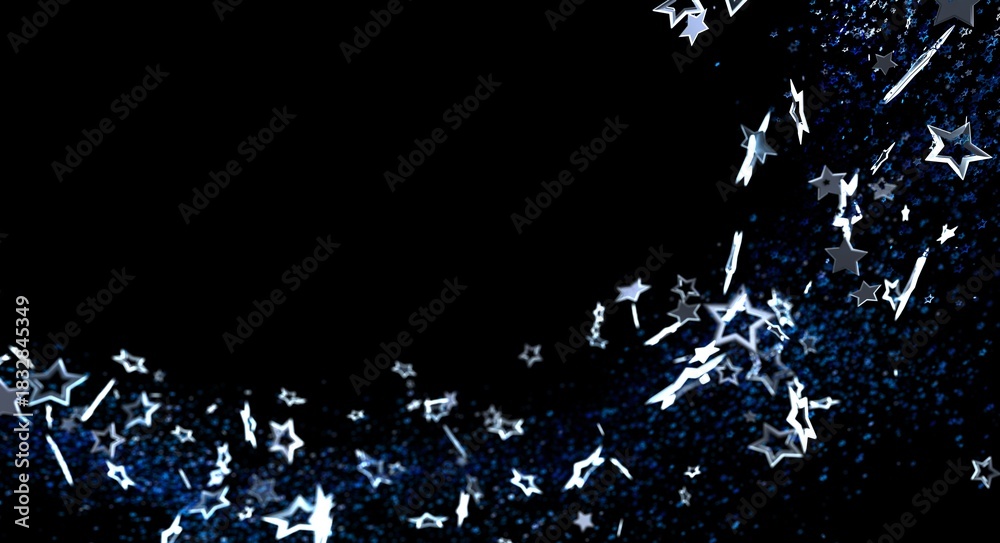 Abstract image of star particles on a black background. Represents dreams, celebration and night. Ideal for various desi