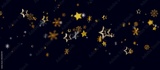 Abstract and festive image featuring golden stars and snowflakes on a deep blue background. Perfect for holiday designs,