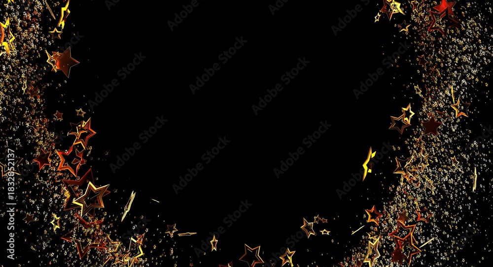 Abstract background featuring shining golden stars and particles against a dark black backdrop. Great for holiday and event