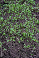 Watercress in the open ground in autumn. Watercress Cultivation. Constant moisture is important for plants.