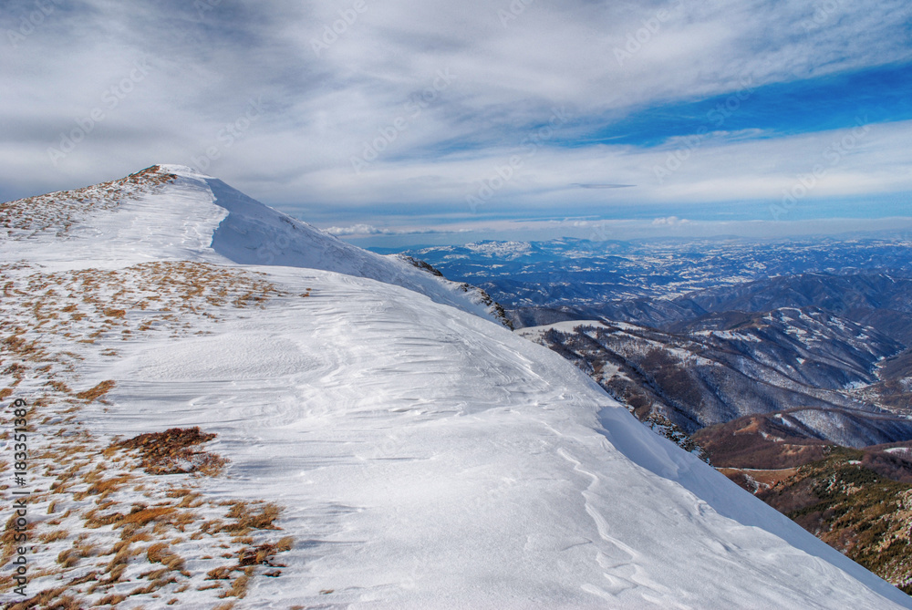Winter landscape. Mountain in snow. Old mountain serbia in winter time