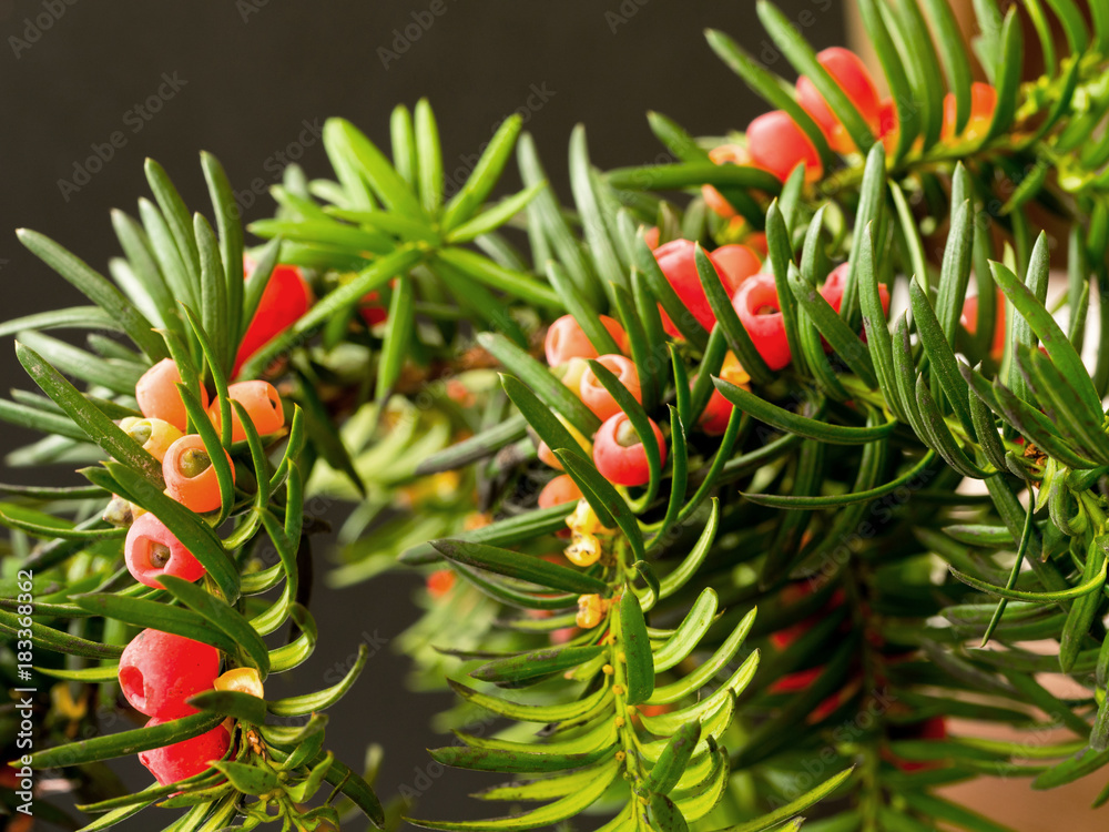 Czerwone dojrzałe owoce cisu pospolitego (Taxus baccata L.)