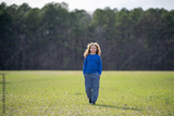 Carefree child in a meadow. Child imagining. Outdoor portrait of a dreamer kid. Freedom and innocence in childhood. Cute child outdoor portrait. Dreamy kids face. Carefree childhood. Dreamy child.