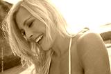 Travel, smile and relax with woman at beach for summer vacation, weekend break and tropical destination. Ocean holiday trip, peace and adventure with person outdoor for tourism, explore and getaway