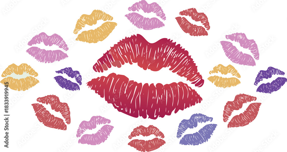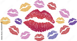 Beautiful red lips isolated on transparent background. red lipstick kiss . lips with lipstick mark on a white background