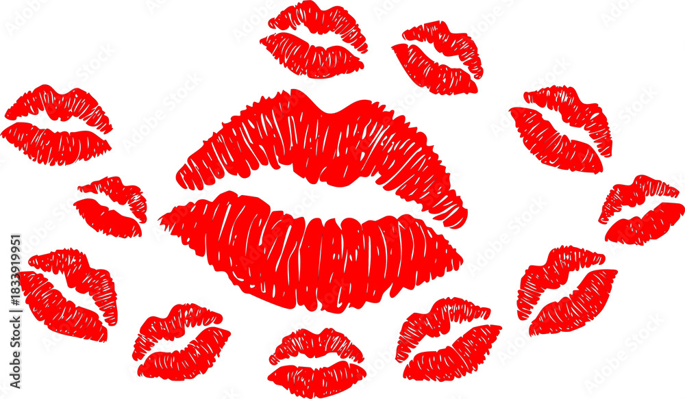 Beautiful red lips isolated on transparent background. red lipstick kiss . lips with lipstick mark on a white background