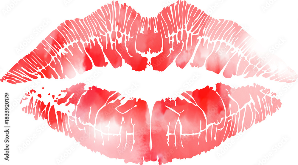 Beautiful red lips isolated on transparent background. red lipstick kiss . lips with lipstick mark on a white background