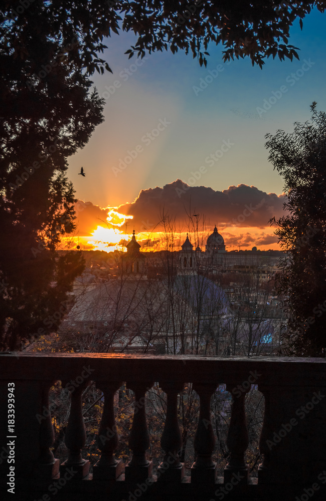 Rome (Italy) - The sunset from Terrazza del Pincio in Villa Borghese park