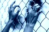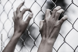 Woman hand holding on chain link fence for remember Human Rights Day concept.