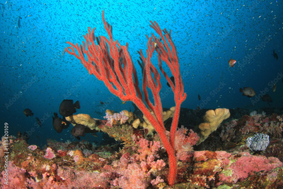 Coral reef underwater in ocean with fish